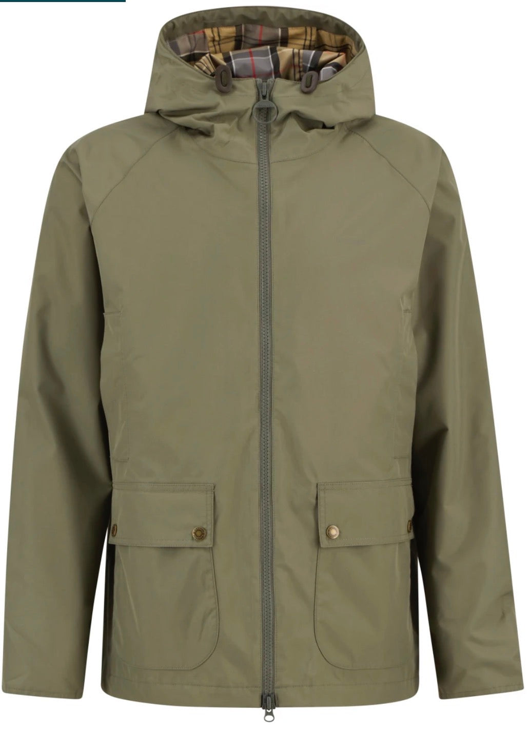 La veste imperméable à capuche Domus Barbour pour homme est dotée d'une doublure en tartan élégante sur la capuche et d'une fermeture à glissière sur le devant, offrant la pièce parfaite pour les intempéries. Conçue avec deux poches inférieures et plus chauffe-mains, cette veste dégage un style haut de gamme et est finie avec un logo subtil sur la poitrine gauche.