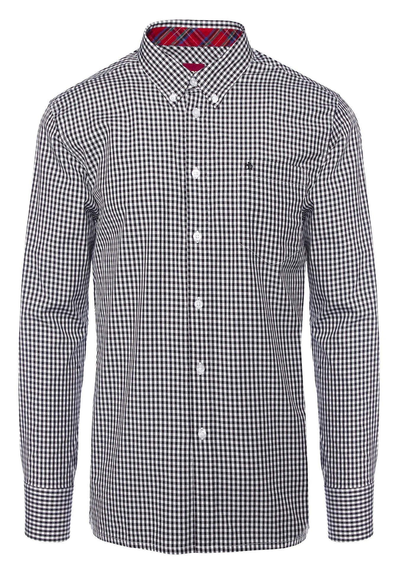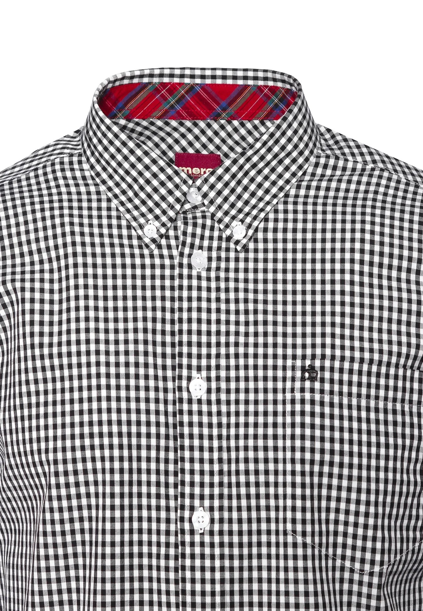Fabriquée en coton doux, cette chemise gingham est détaillée avec un col boutonné, un pli de boîte arrière et des fléchettes jumelles pour un ajustement net. Fini avec un emblème de couronne brodé sur la poche poitrine et un col doublé de tartan pour une touche subtile d'héritage.