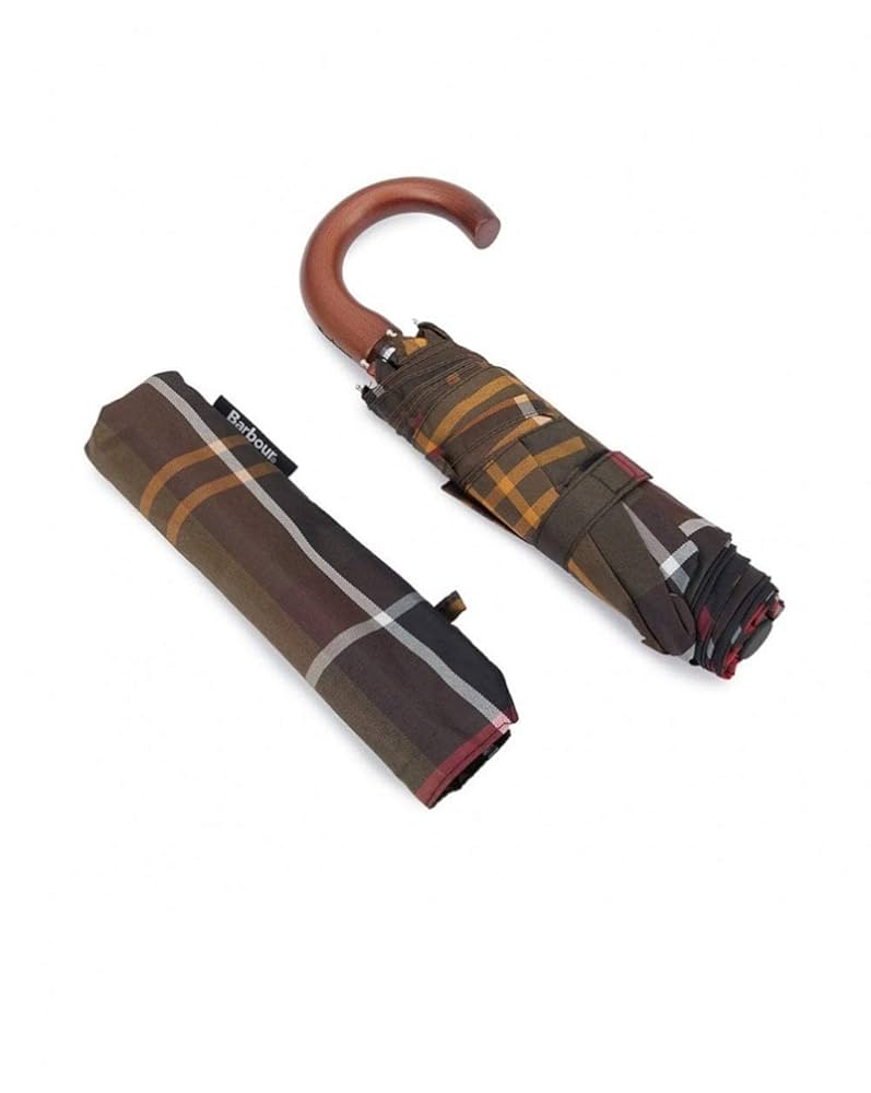 Barbour vous propose pour compléter votre collection un petit parapluie télescopique décliné dans plusieurs tartan de la marque !